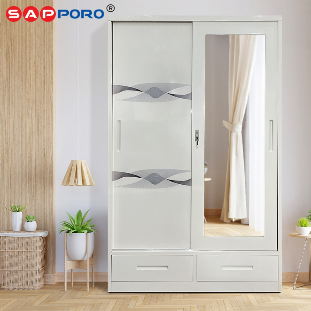 Lemari Pakaian Besi Sliding Door Cermin SAPPORO VIANOVA - Gratis Ongkir