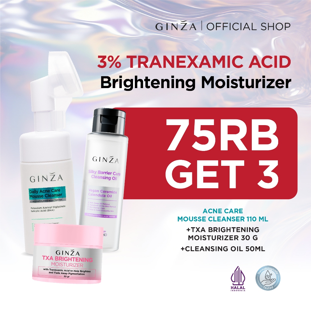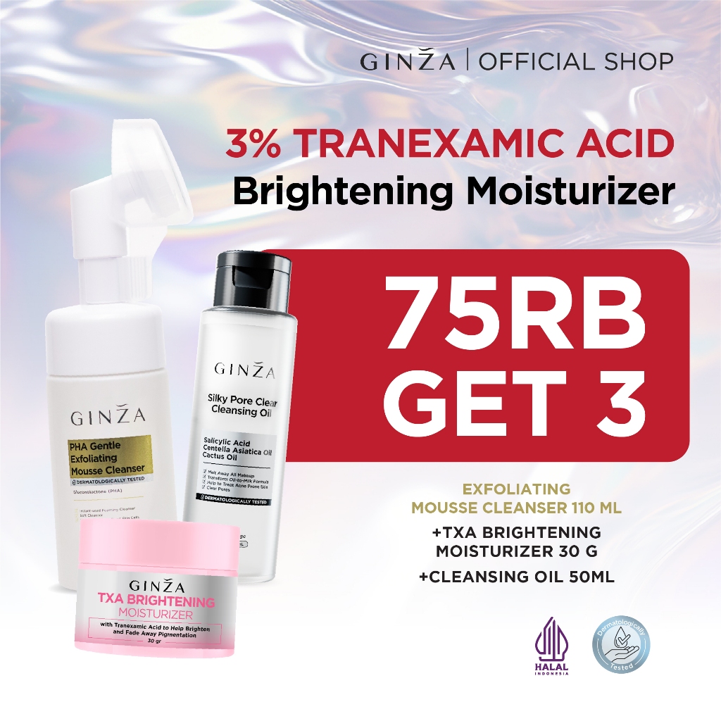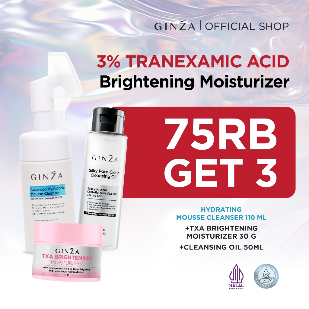 Ginza Double Cleanse & Glow Set | Ginza Mousse Cleanser + Cleansing Oil 50ml + Ginza 3 PERSEN Tranexamic Acid TXA