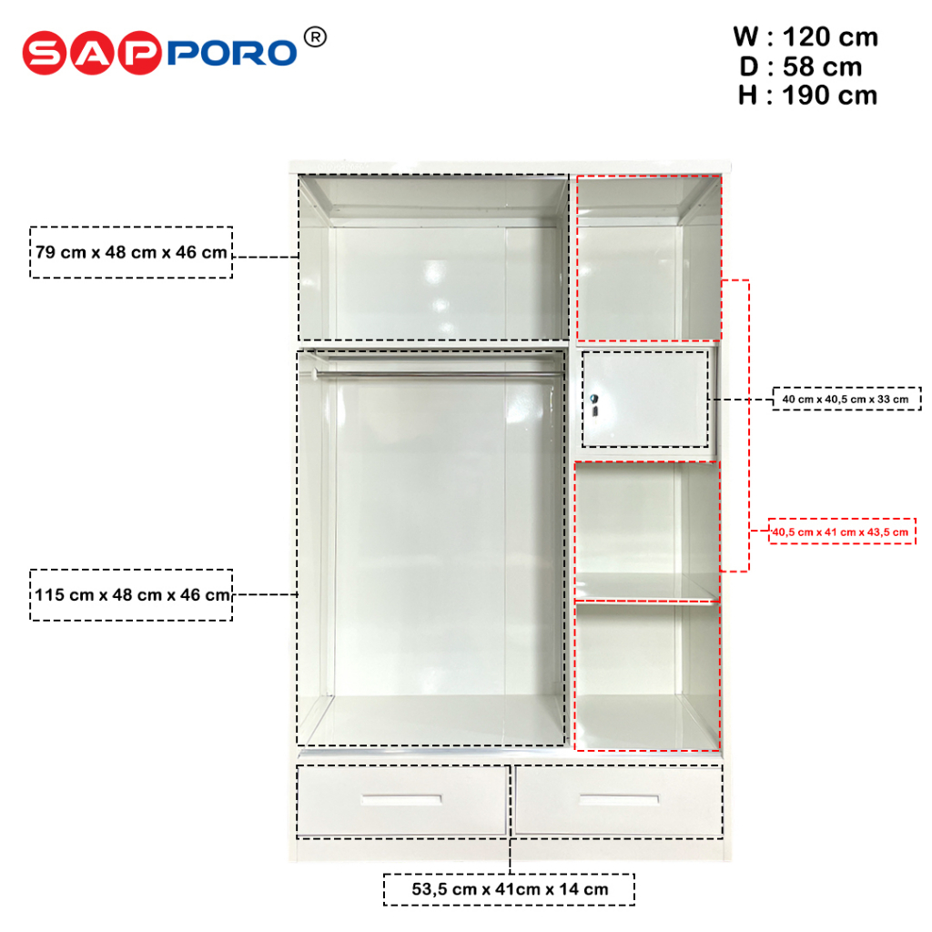 Lemari Pakaian Besi Sliding Door Cermin SAPPORO VIANOVA - Gratis Ongkir