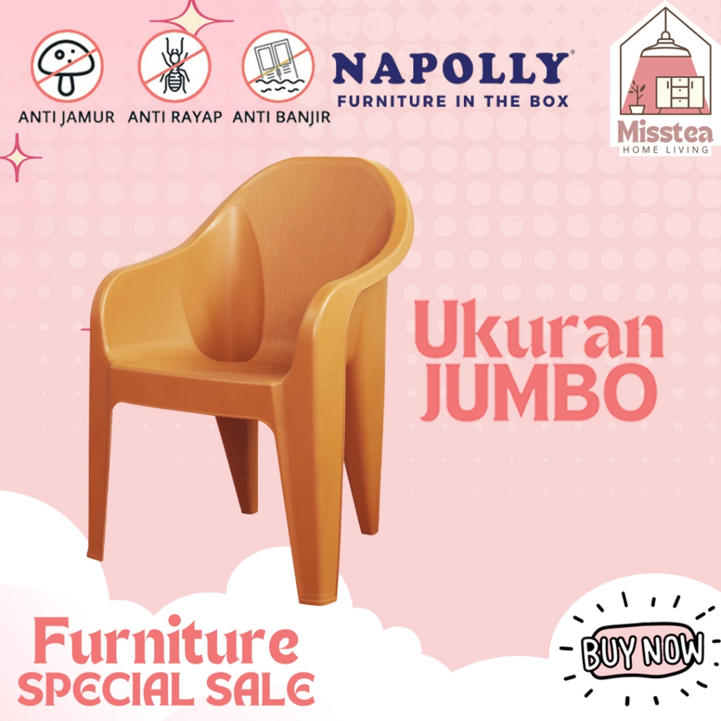 [KUAT HINGGA 175KG] NAPOLLY TCC 500 KURSI SANTAI PLASTIK MINIMALIS / CAFE / ESTETIK