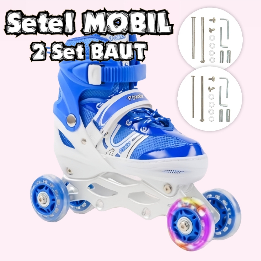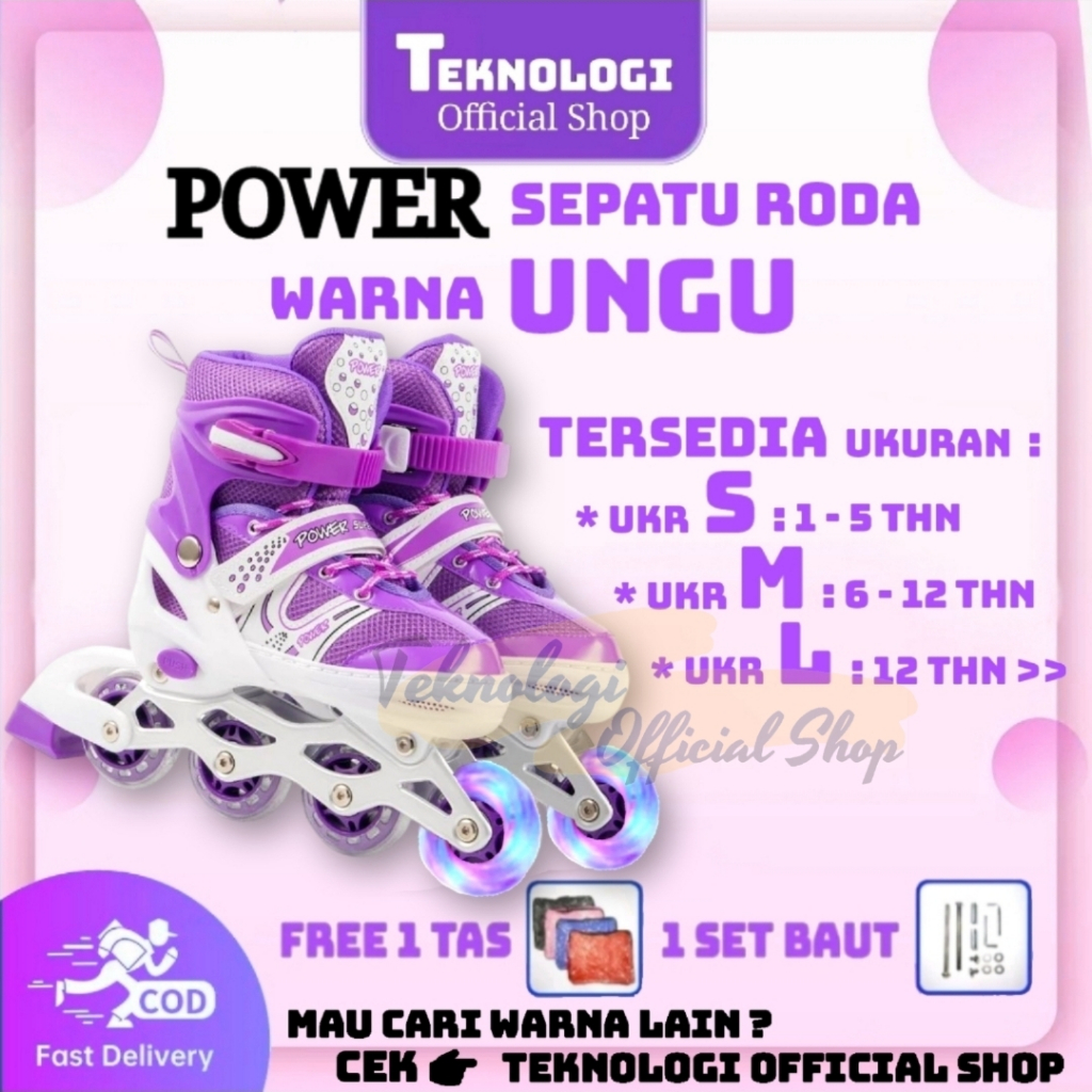 TOS UNGU Sepatu Roda Inline Skate POWER Roda Nyala/ Untuk Anak Remaja Dewasa/ Free Tas Baut Kunci L
