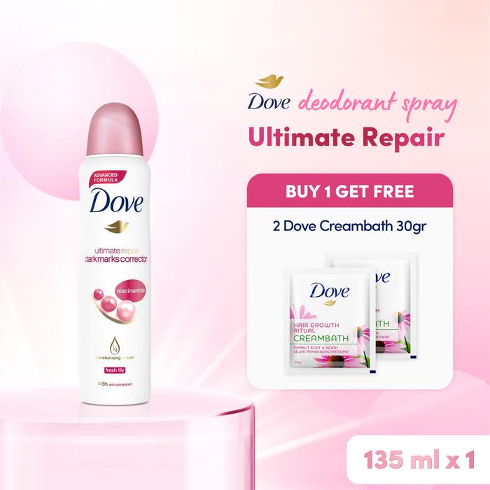 Buy 1 Dove Antiperspirant AEROSOL DEODORANT SPRAY Ultimate Repair Fresh Lily 135ml GET 2 Dove Creambath 30gr