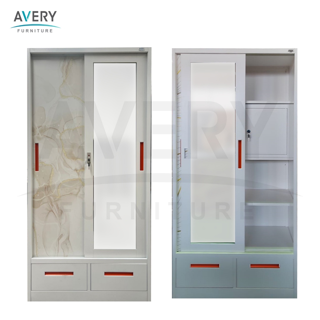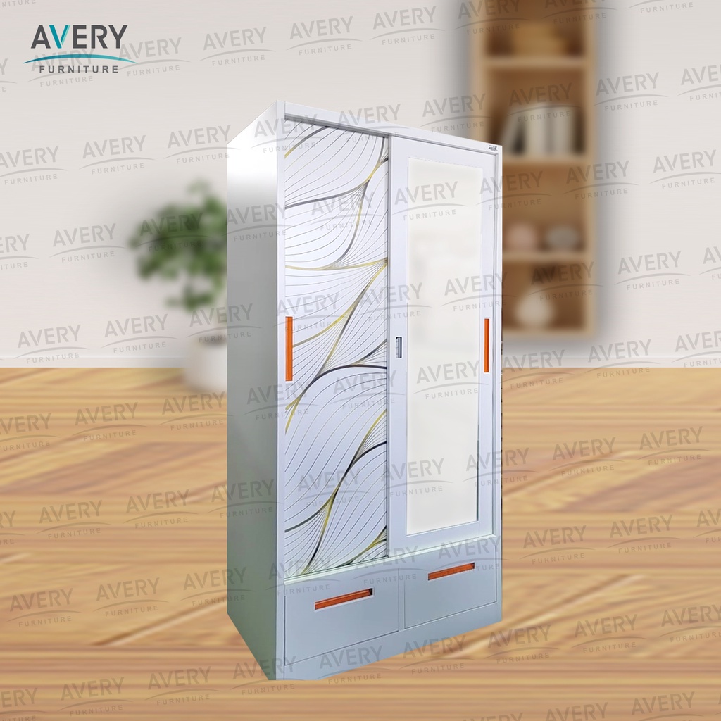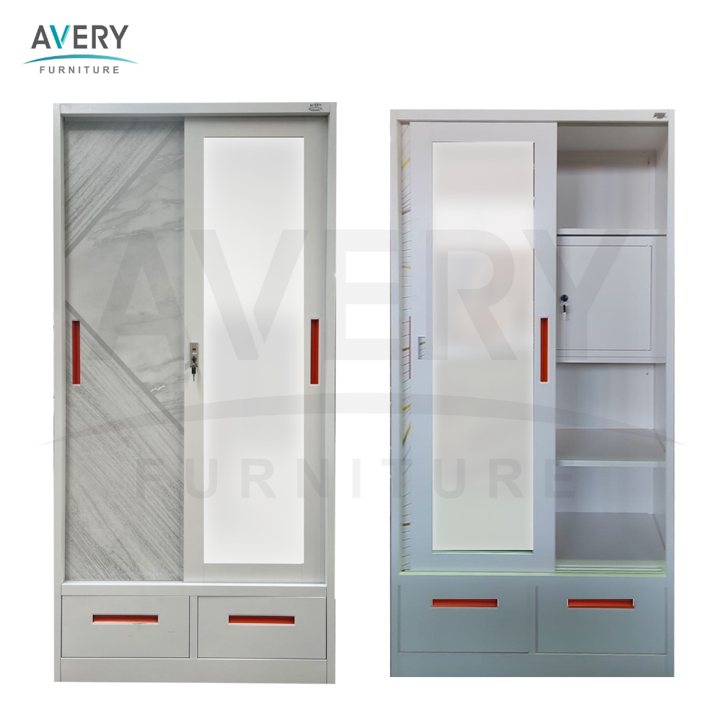Lemari Pakaian Besi 2 Pintu Sliding / Steel Wardrobe Avery - SL D900 Gratis Ongkir