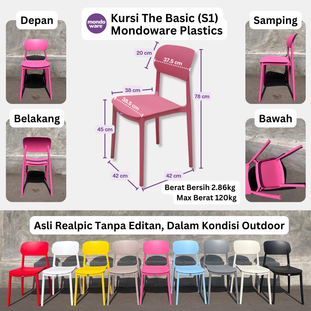 MONDOWARE | Kursi Makan Estetik Minimalis Ergonomis Plastik Fiberglass PP - Kursi Tunggu Kantor