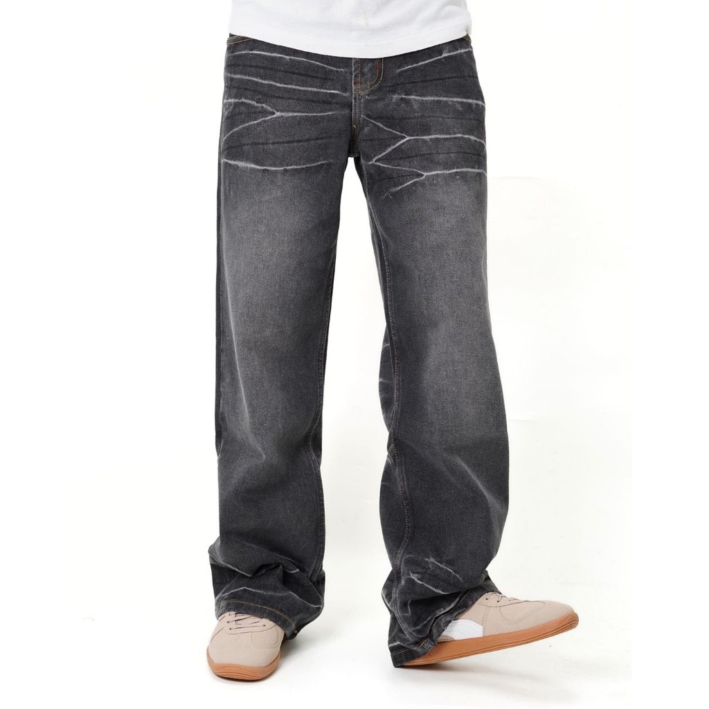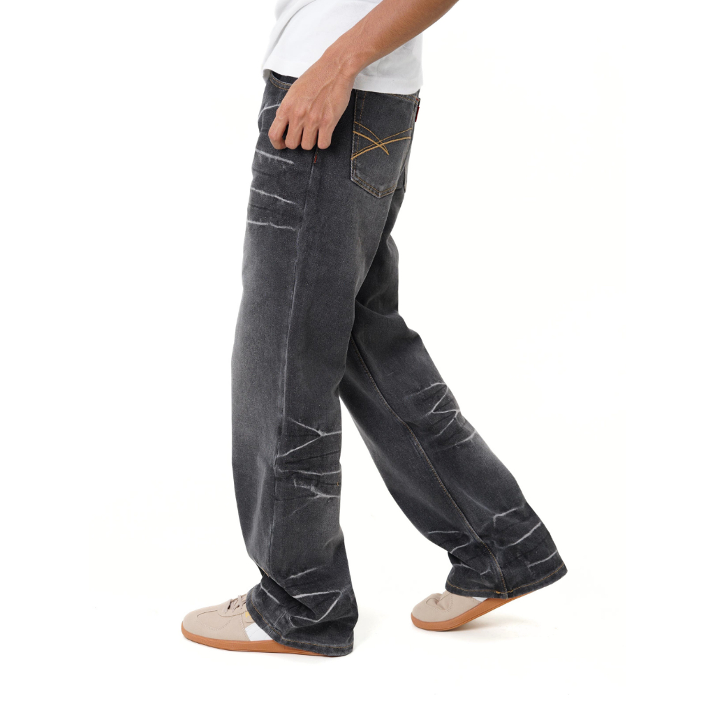 Arifan® Celana Jeans Pria Baggy Pants 550 Black Wishker