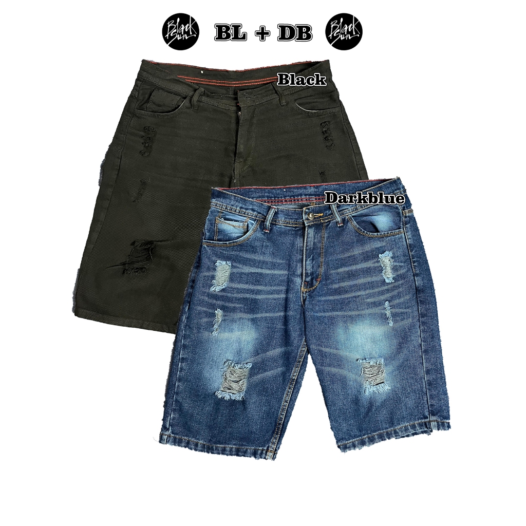 PAKET 100rb ISI 2pcs CELANA JEANS PENDEK SOBEK PRIA DENIM 12OZ PAKET CELANA JEANS PRIA BLACKSUN.ID