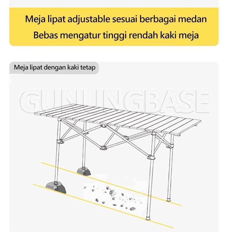 GunungBase Meja Lipat Adjustable Outdoor Struktur Kokoh Ringan Mudah Dibawa Anti Air Dan Gores Cocok Camping Piknik Peralatan Berkemah