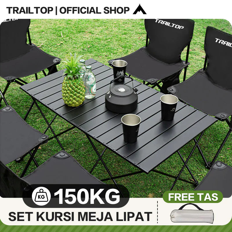 TrailTop Meja Kursi Lipat Outdoor 1 Set Meja Lipat Outdoor Dan Kursi Lipat Portable Baja Karbon