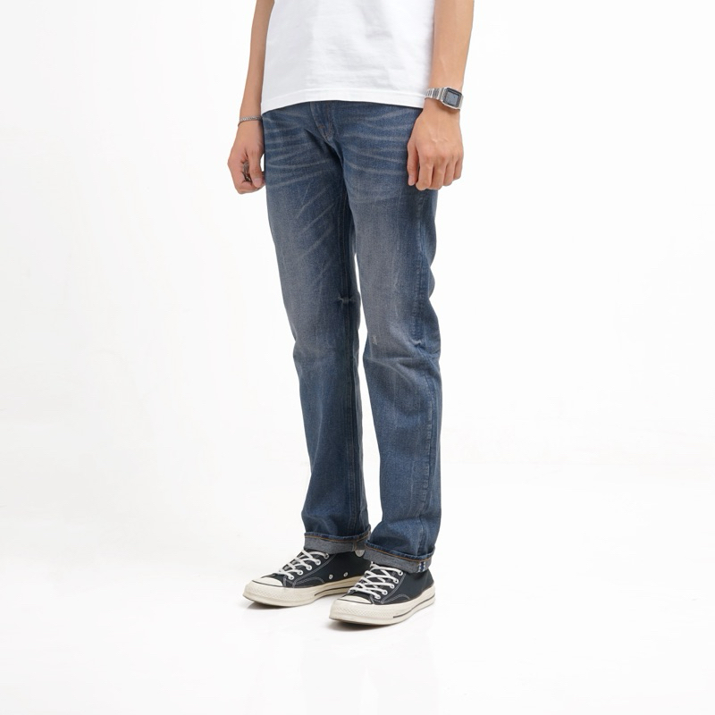 Volkvog Jeans Malaga Celana Panjang Washed Denim Pria Slim Straight Biru