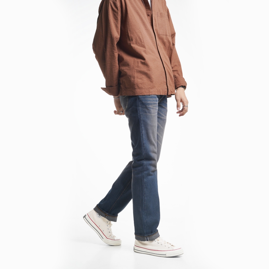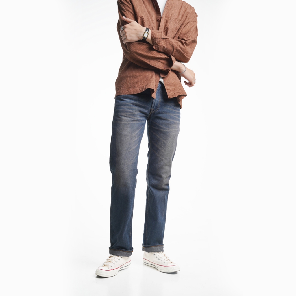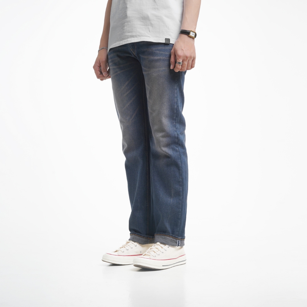 Volkvog Jeans Blue Storm Celana Panjang Washed Denim Pria Slim Straight Biru