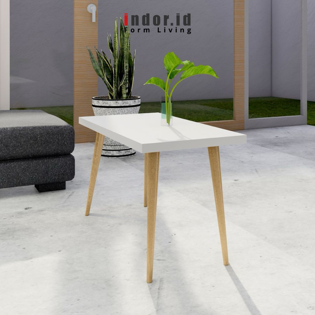 Meja Kotak Serbaguna 40x80 – Top Plywood PVC Sheet & Kaki Jati Asli | Meja Tamu / Teras / Buku Estetik