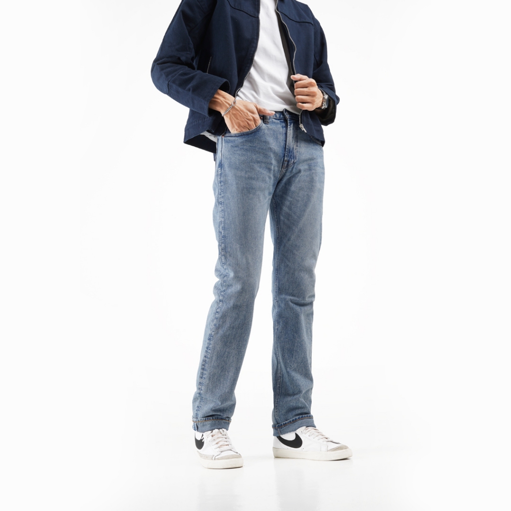 Volkvog Jeans Light Blue Celana Panjang Washed Denim Pria Slim Straight Biru