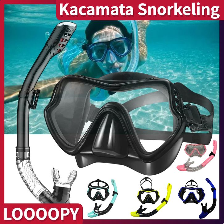 Kacamata Selam + Selang Scuba Diving Snorkeling Tempered Glass 1 Set Kacamata Selam Diving Snorkeling Scuba