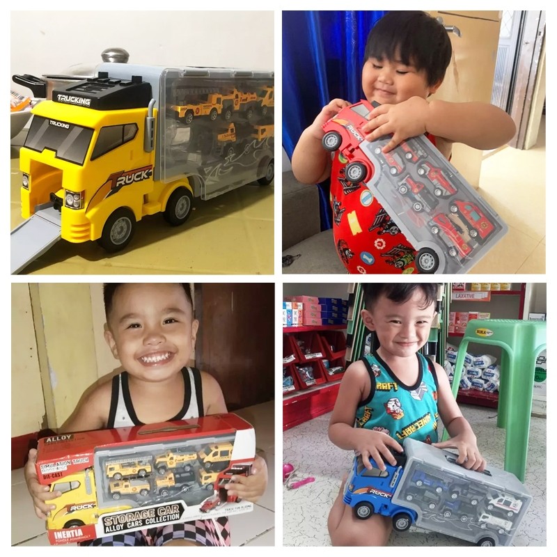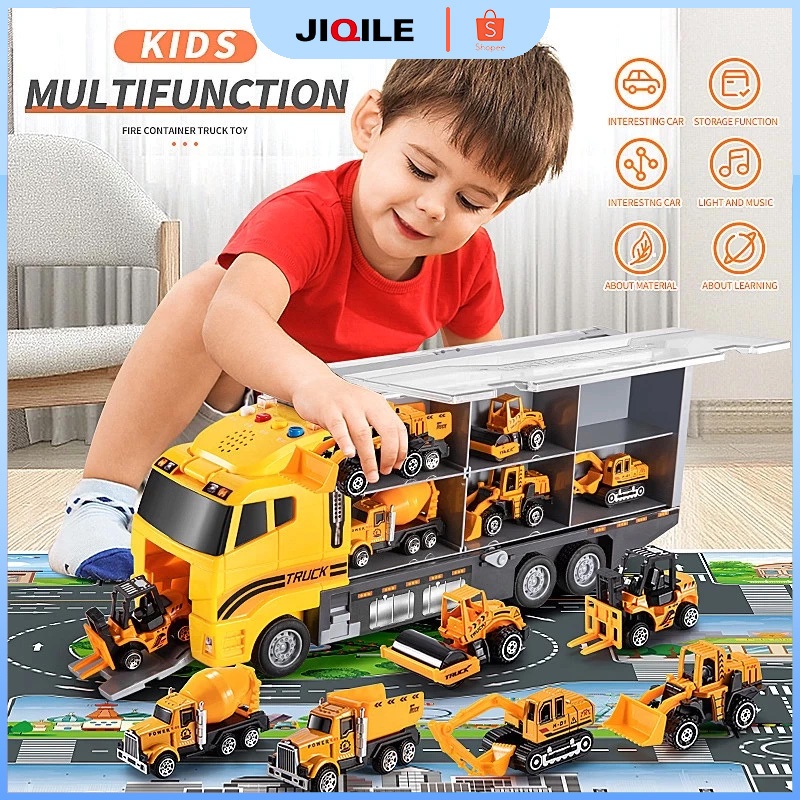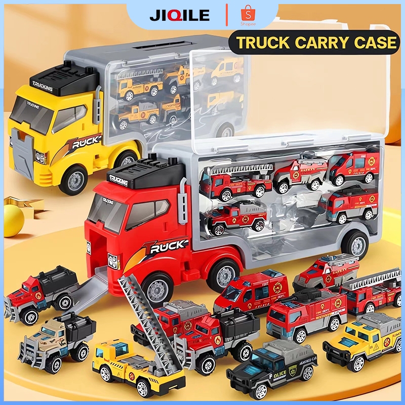 JIQILE【Free 6 Mobil Car】Mainan Anak mobil Storage Container Fire Truck car set Alloy PullBack Car Inertia car
