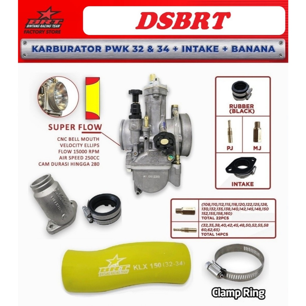 Paket Karburator Karbu BRT + INTAKE + BANANA KLX 150 Dtracker 150 SUPER FLOW