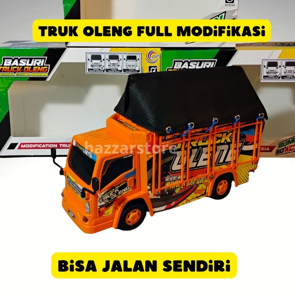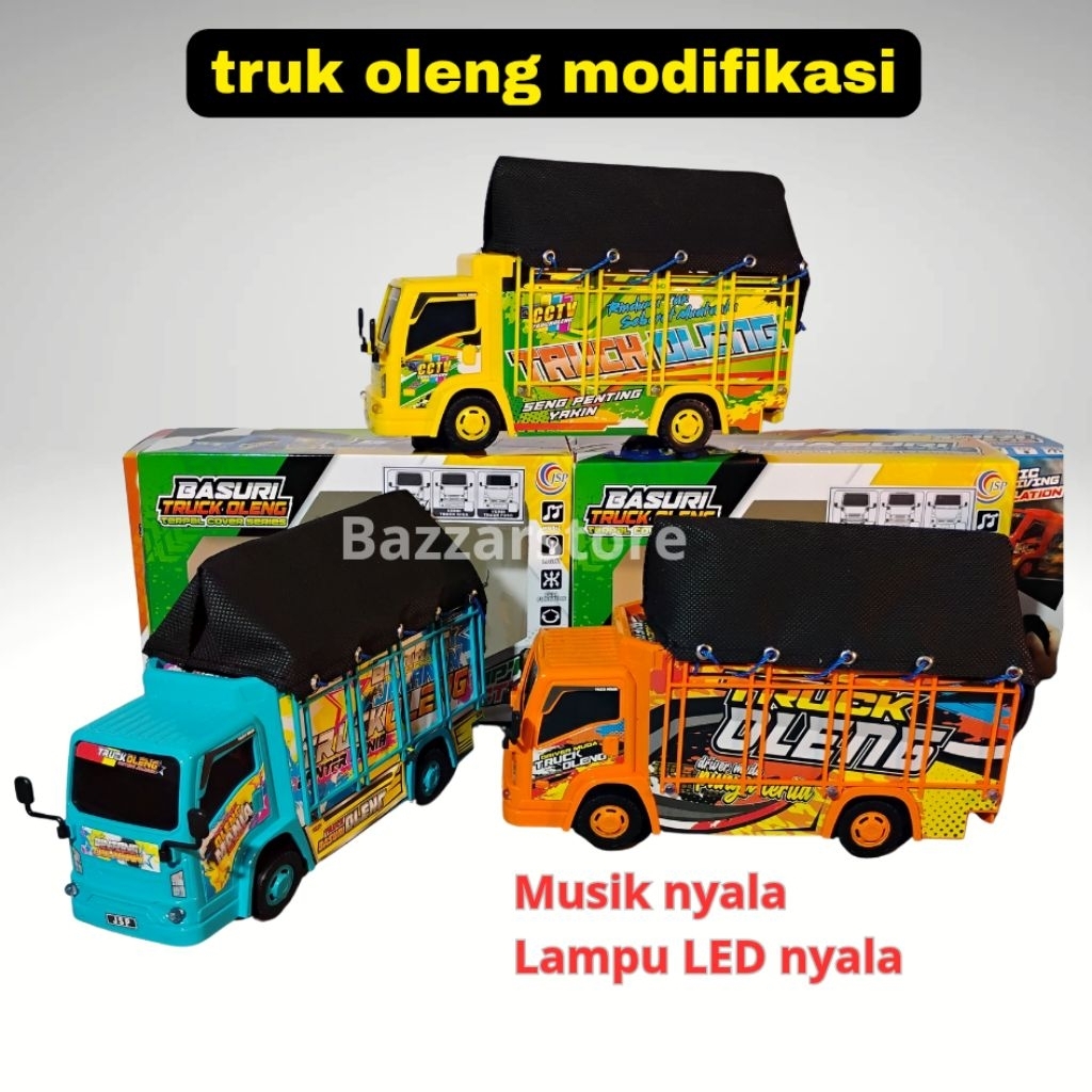 mainan truk oleng modifikasi terpal bisa jalan sendiri lampu nyala dan musik telolet nyala, miniatur truk oleng modifikasi, mobil-mobilan truk oleng