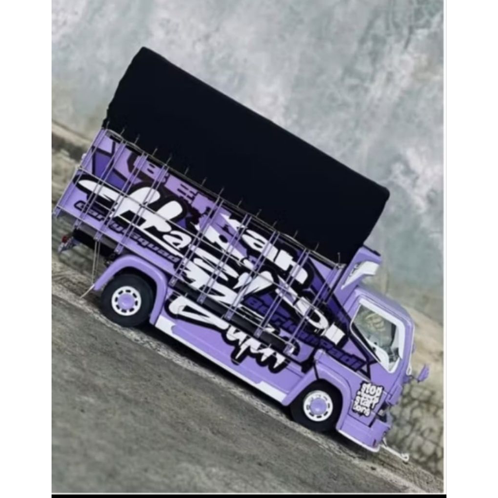 miniatur truk oleng lampu dan terpal bisa oleng unggu