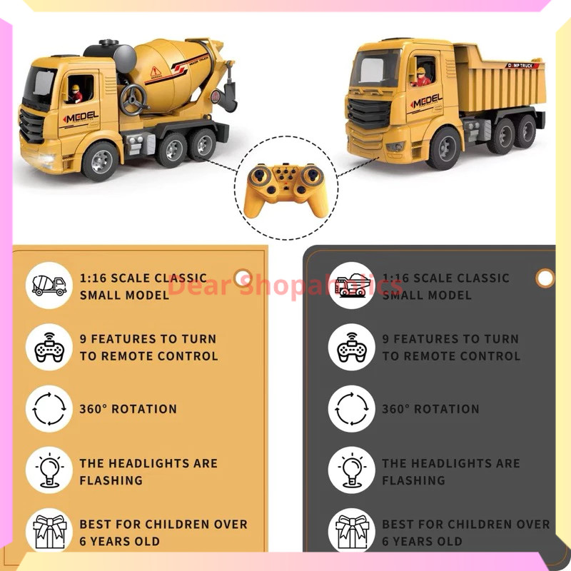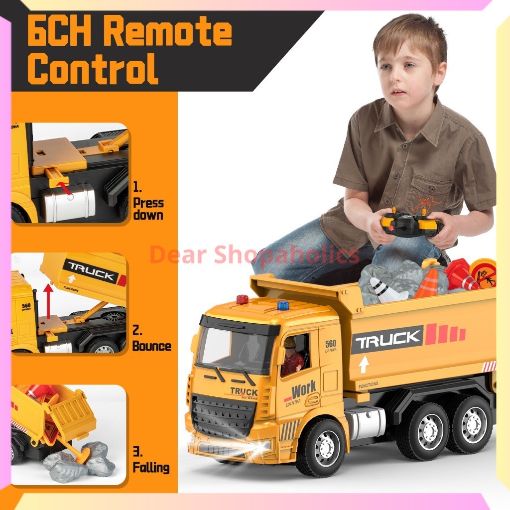 Mainan Anak Mobil Remote Control Kontruksi RC Dump Truck Ada Lampu Dan Suara Truk Pasir Truk Konstruksi Alat Berat Dumptruck