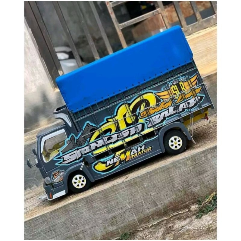 truk miniatur geratis lampu dan terpal bisa abu kehitaman