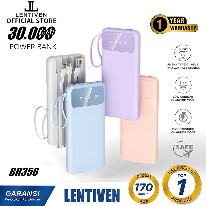 LENTIVEN 30000MAH POWERBANK MINI FAST CHARGING 4 KABEL LIGHTNING & TYPE C FOR IPHONE/ANDROID BH356