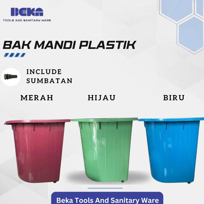 BAK MANDI PLASTIK DENGAN KOTAK SABUN WARNA BIRU , HIJAU , MERAH - BIRU