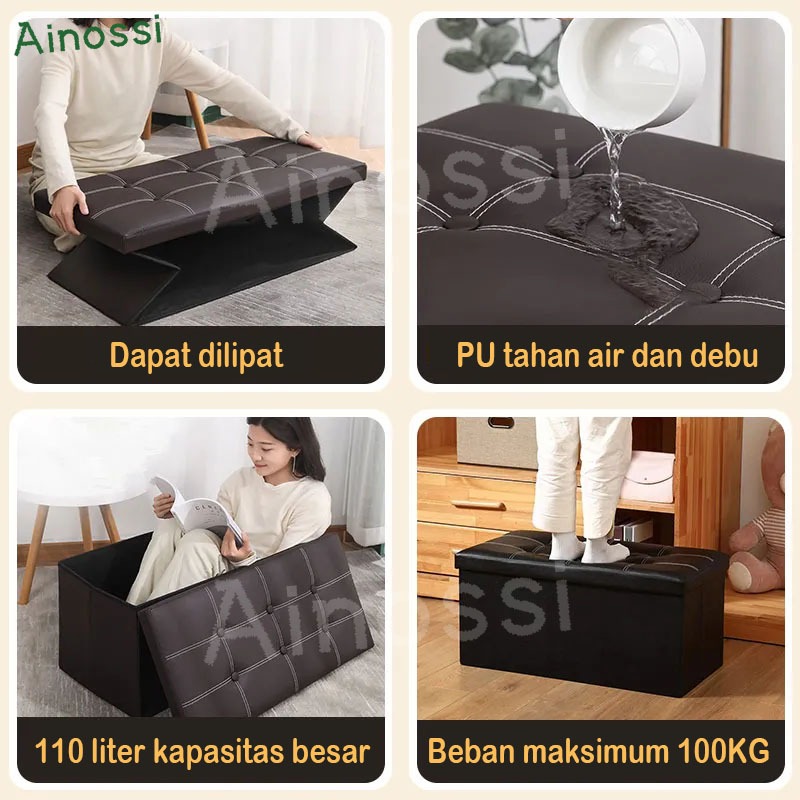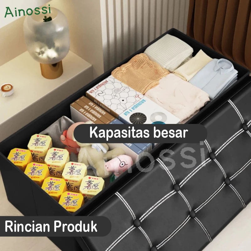AINOSSI Kursi Penyimpanan Ottoman Lipat Sofa Dengan Kotak Penyimpanan Bangku Kulit Organizer Kotak Tempat Duduk Sandaran Kaki