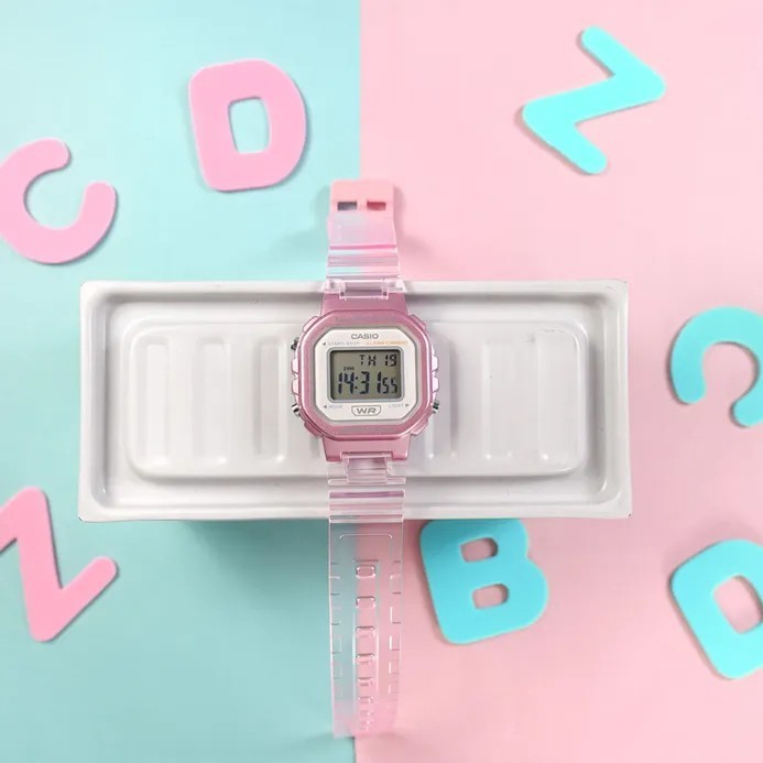 Jam Tangan Wanita Digital Casio Standard LA-20WHS-4ADF LA20 LA-20W Transparent Resin Band