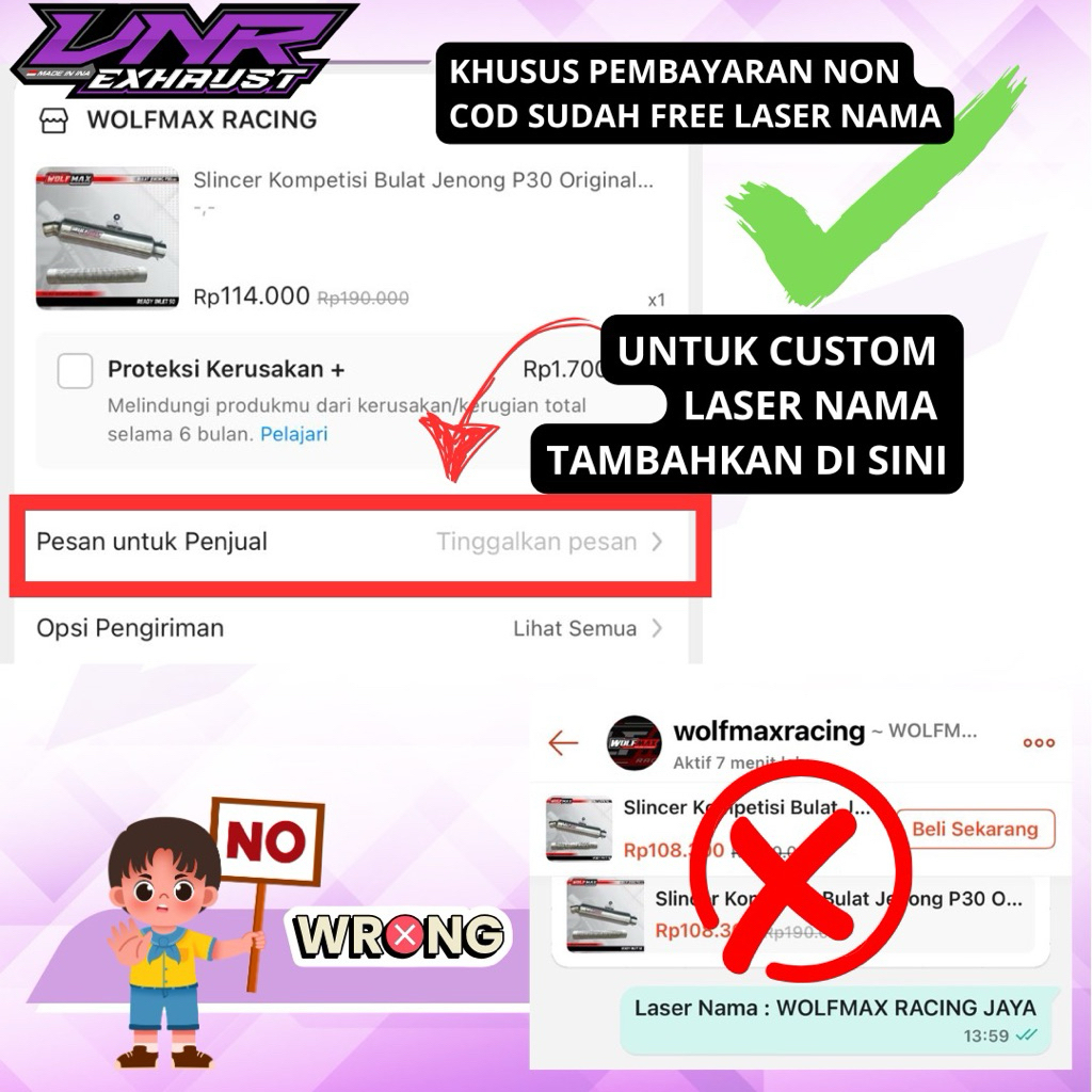 Knalpot Racing Jenong Set Leher 35-38 Megapro CB GL Tiger Bending Original VNR