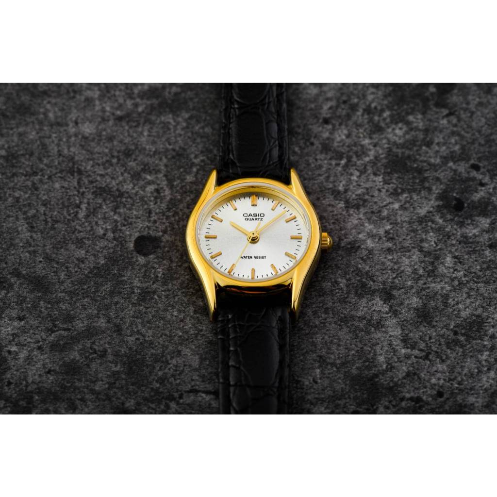 Jam Tangan Wanita Casio Standard LTP-1094Q-7ARDF LTP1094 LTP-1094Q Enticer Gold Dial Black Leather Band