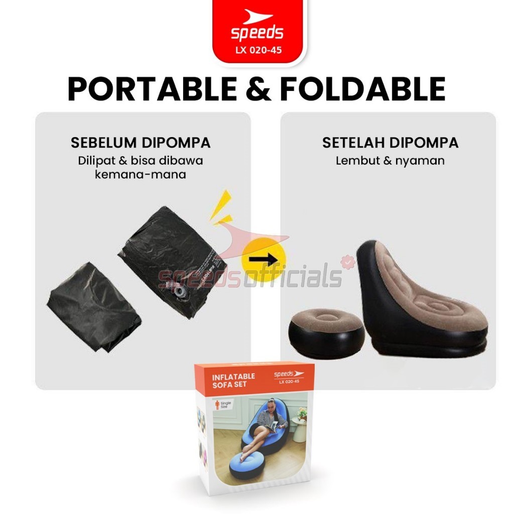 SPEEDS Sofa Angin Beanbag Squishy Jumbo Inflatable Sofa + Stool Tiup Lazy Bag Outdoor Indoor Lay Bag Aestetik 020-45