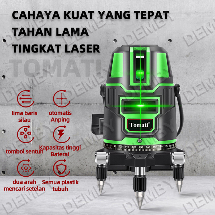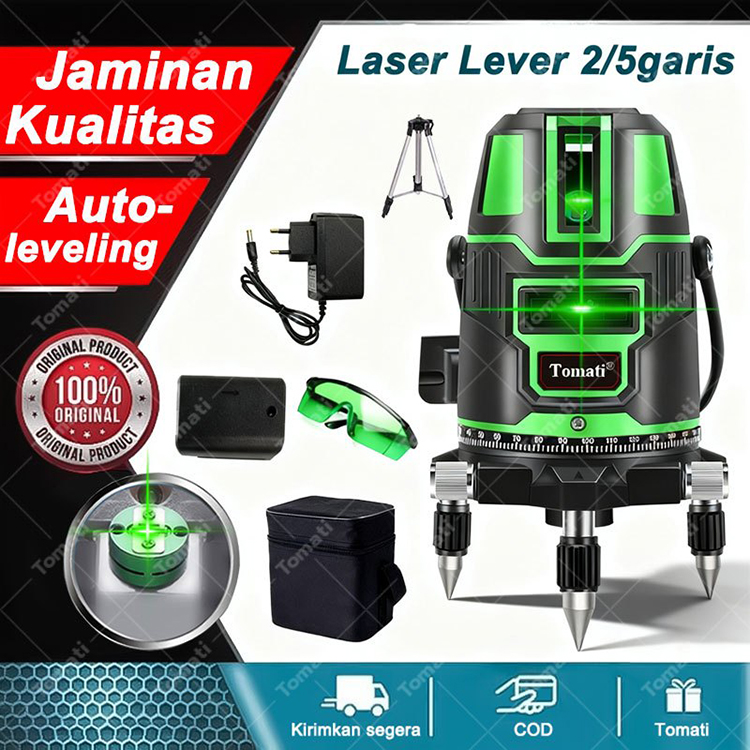 Tomati 2/5LINE Laser Level 2/5 Garis Laser Hijau Horizontal Vertikal 360 Derajat Self Leveling Cross Lazer Level lengkap