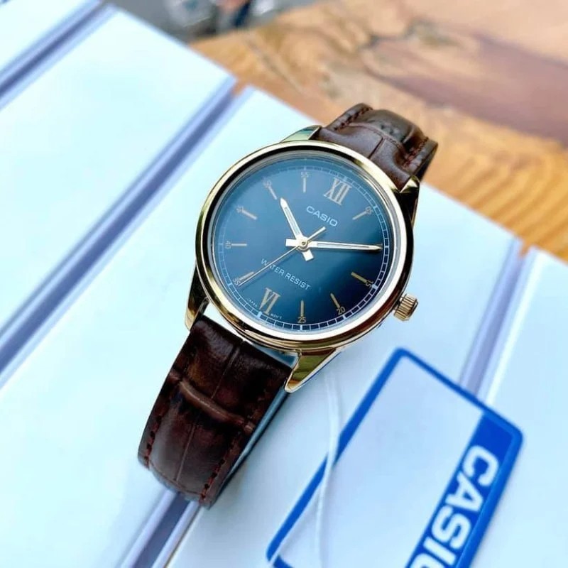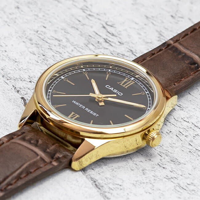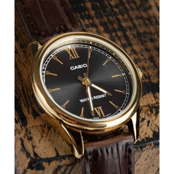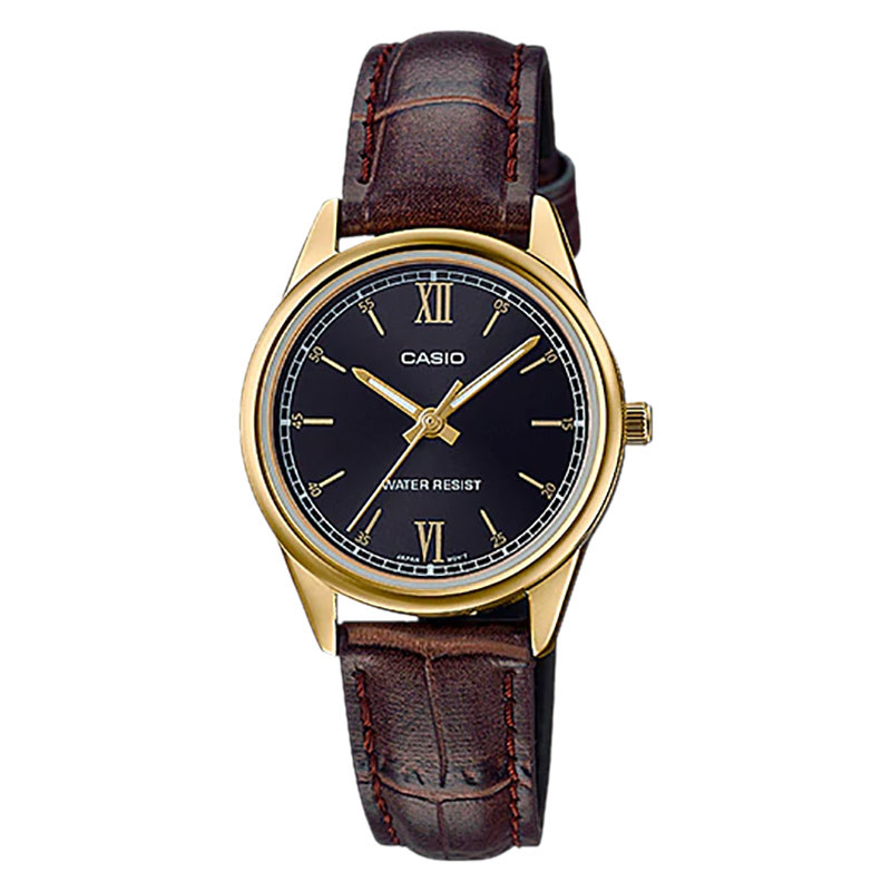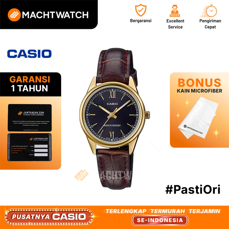 Jam Tangan Wanita Analog Casio Standard LTP-V005GL-1B2UDF LTPV005 LTP-V005GL Black Dial Brown Leather Band