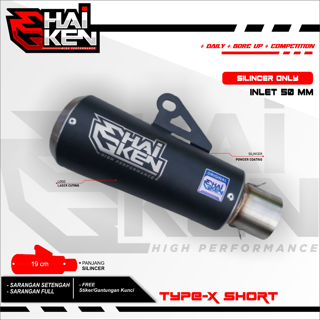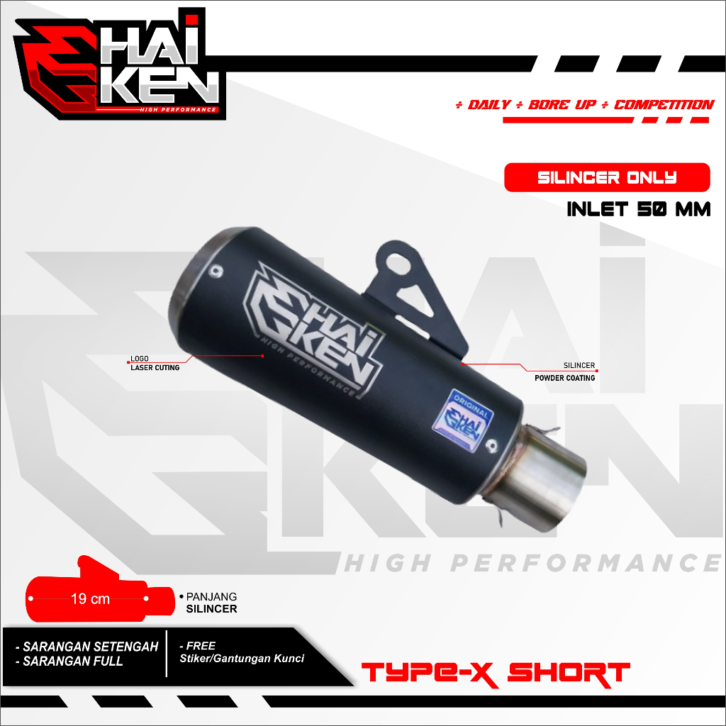 Slinser only Silinser knalpot original haiken muffler Black coating type X Short for Selenser
