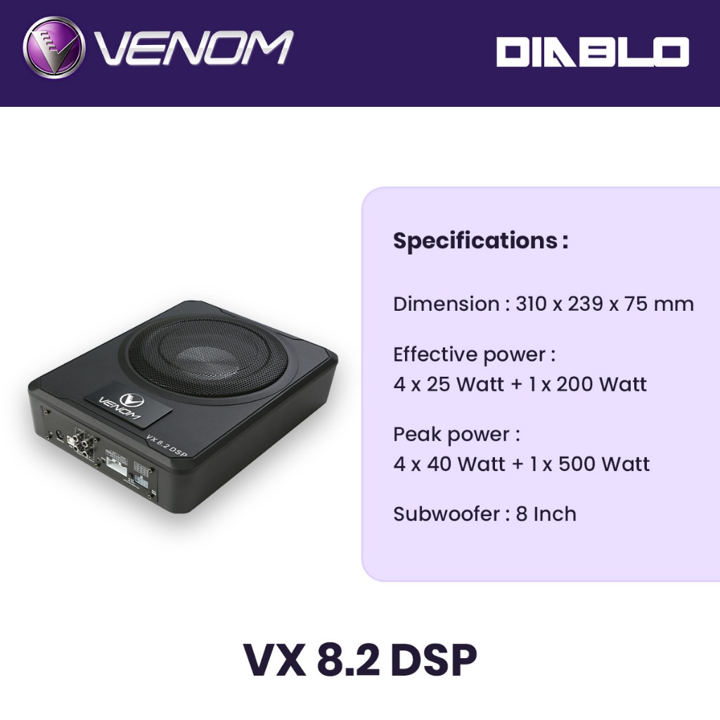 Venom Diablo Series VX 8.2 DSP Subwoofer Kolong Mobil Aktif dengan Processor Plug and Play