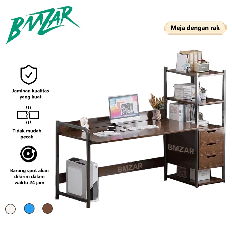 BMZAR Meja Belajar Minimalis Meja Kompute r Meja Kerja Multifungsi Meja Tulis Kokoh Meja Gaming Dengan Rak Buku