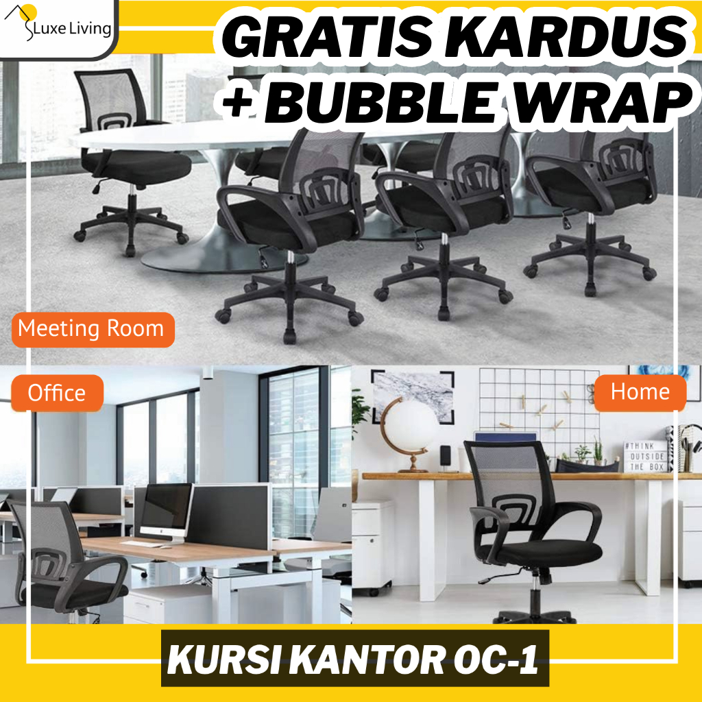FREE BUBBLE WRAP Kursi Kantor Kerja Belajar Ergonomis Putar Hidrolik Kursi Boss Staff Jaring OC-1