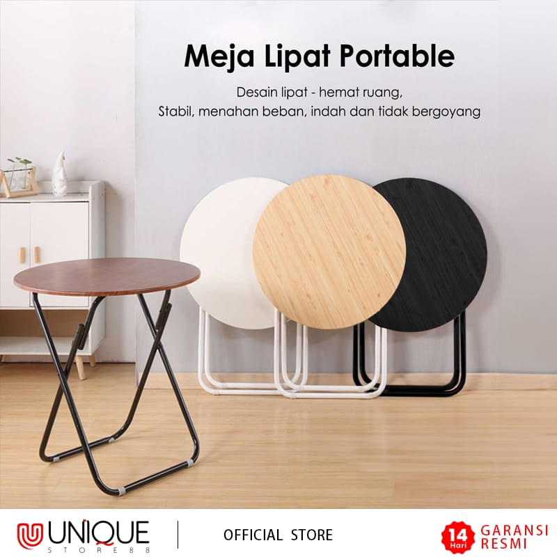 Meja Lipat Portable Meja Lipat Bulat Diameter 60cm Meja Cafe Meja Makan Serbaguna Bahan Besi Fiberboard Tebal