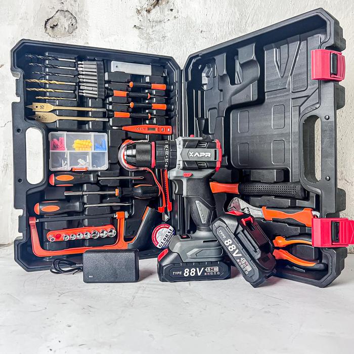 Mesin Bor Baterai Drill Impact Keyless Chuck Auto Lock Metal Beton Besi Kayu Sekrup Baja Ringan Bor APR AP17+ Gen4 Brush
