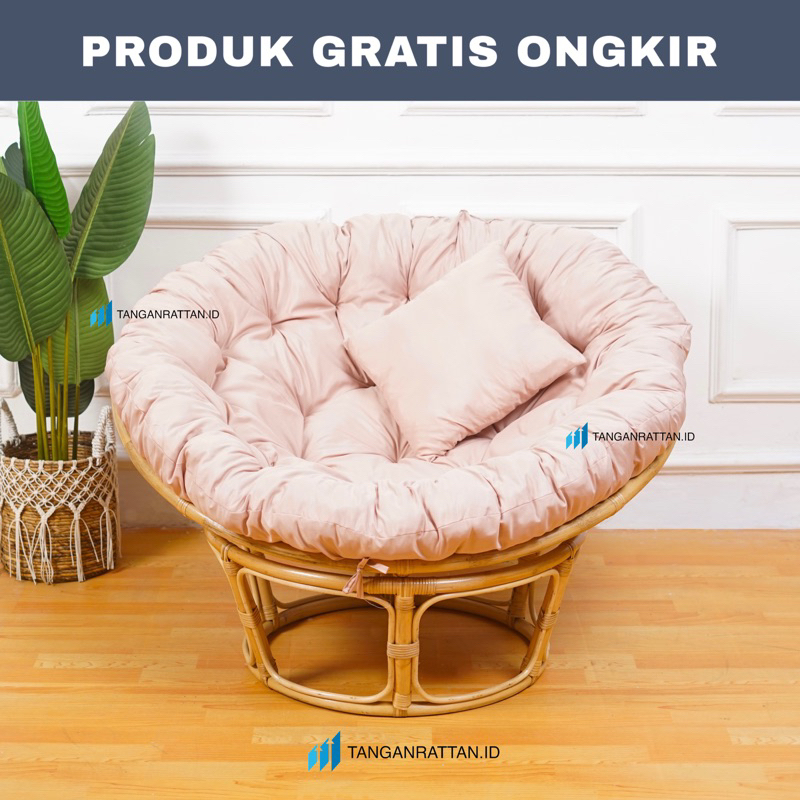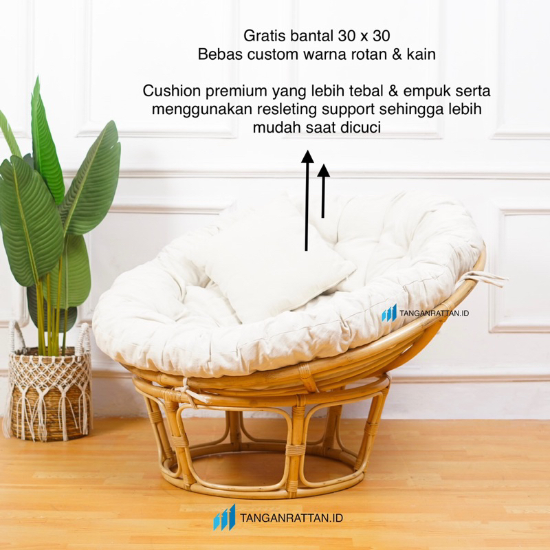 KURSI SANTAI PAPASAN ROTAN DENGAN KASUR DAN BANTAL / KURSI MINIMALIS PARABOLA BULAT FINISHING SOLID
