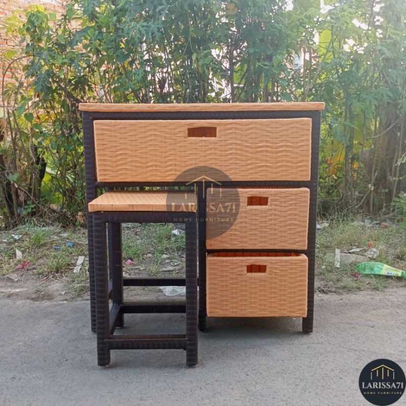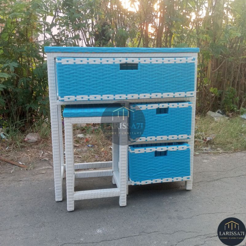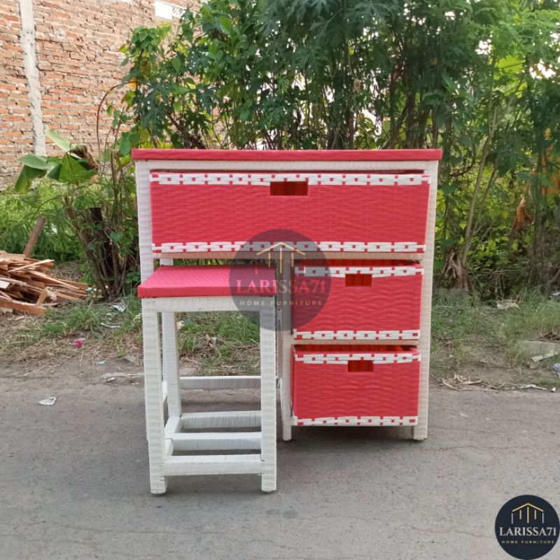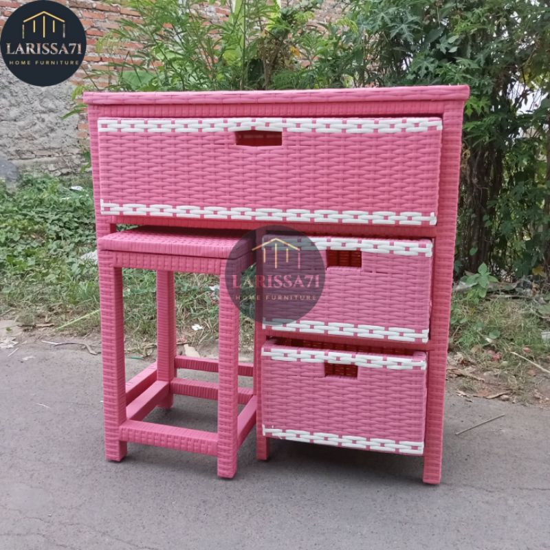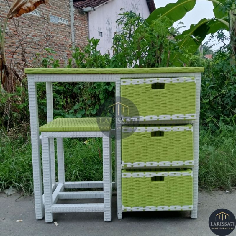 Meja Belajar Anak Rotan Sintetis Warna Warni Retro