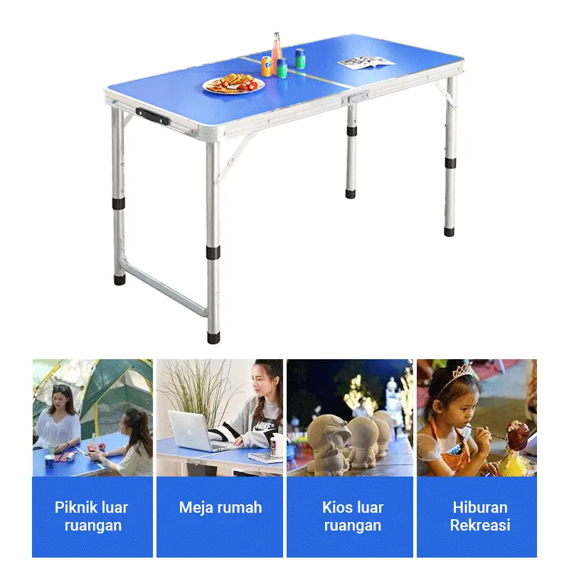 Mehaa meja lipat outdoor 120x60cm -portable adjustable bahan aluminium anti karat utk camping/piknik