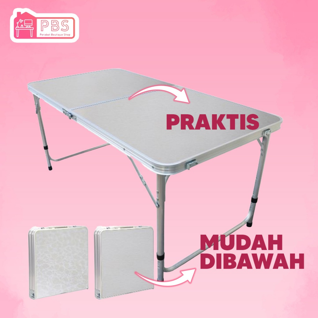 PERABOT Meja Laptop Lipat Portable Meja Lipat Belajar Meja Kerja Uk Model Kaki Bulat 120cm X 60cm