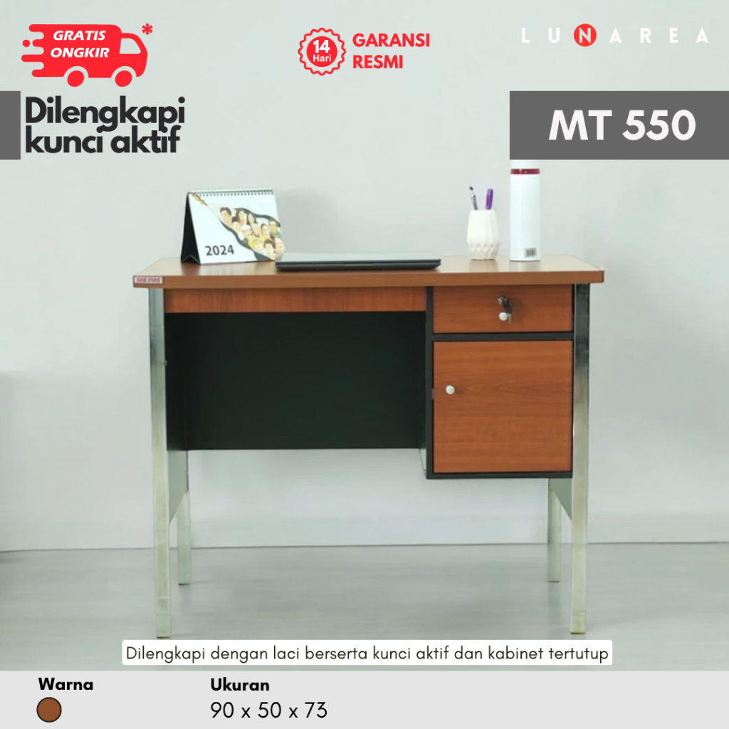 Lunarea Furniture MT 550 Meja Tulis Kaki Besi Modern Minimalis Meja dan Rak Tulis Dengan L