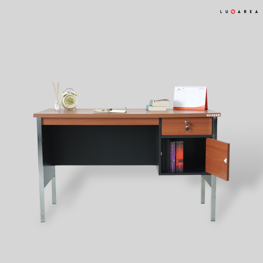 Lunarea Furniture MT 570 Meja Tulis Kaki Besi Modern Minimalis Meja dan Rak Tulis Dengan L
