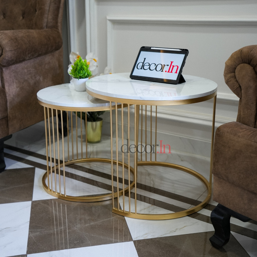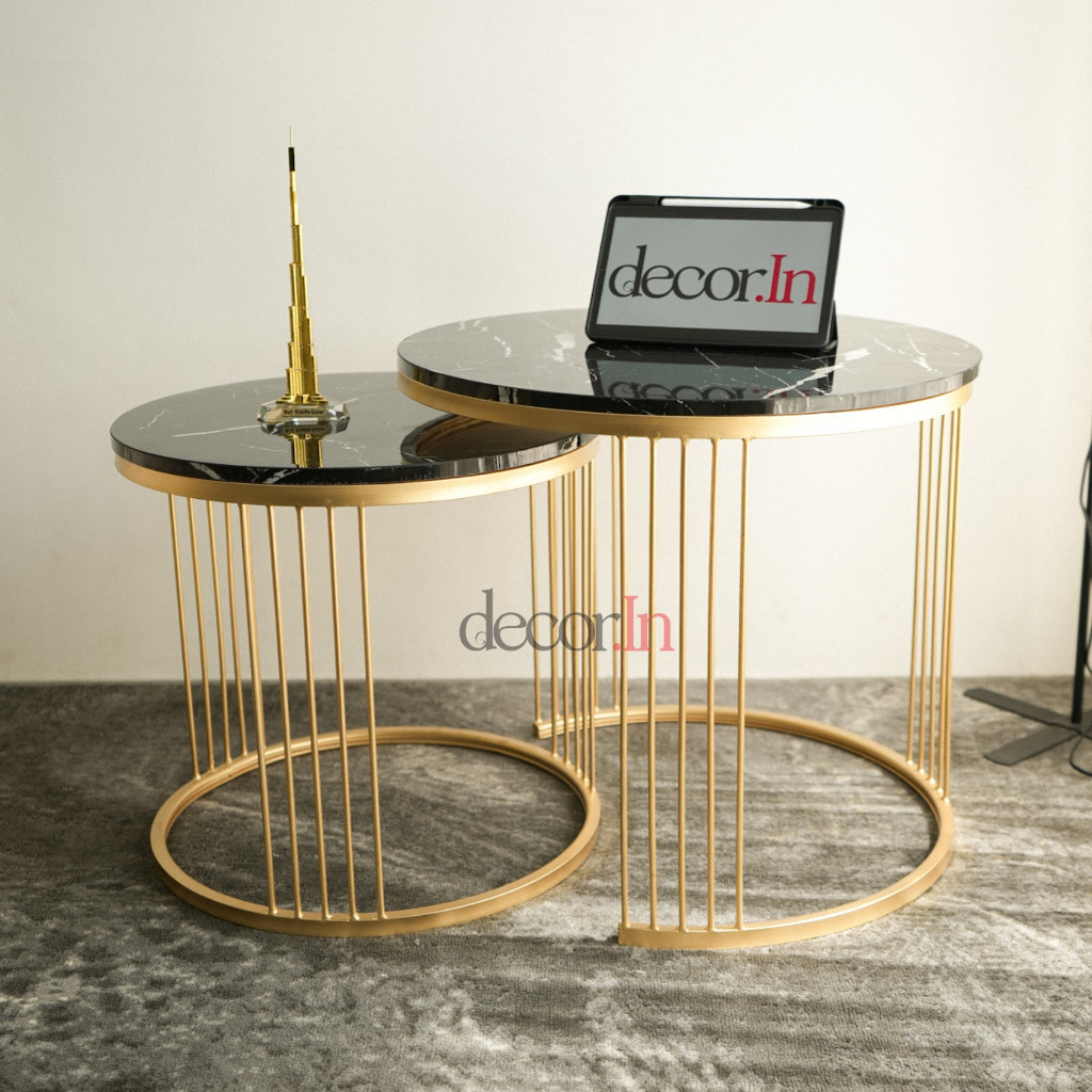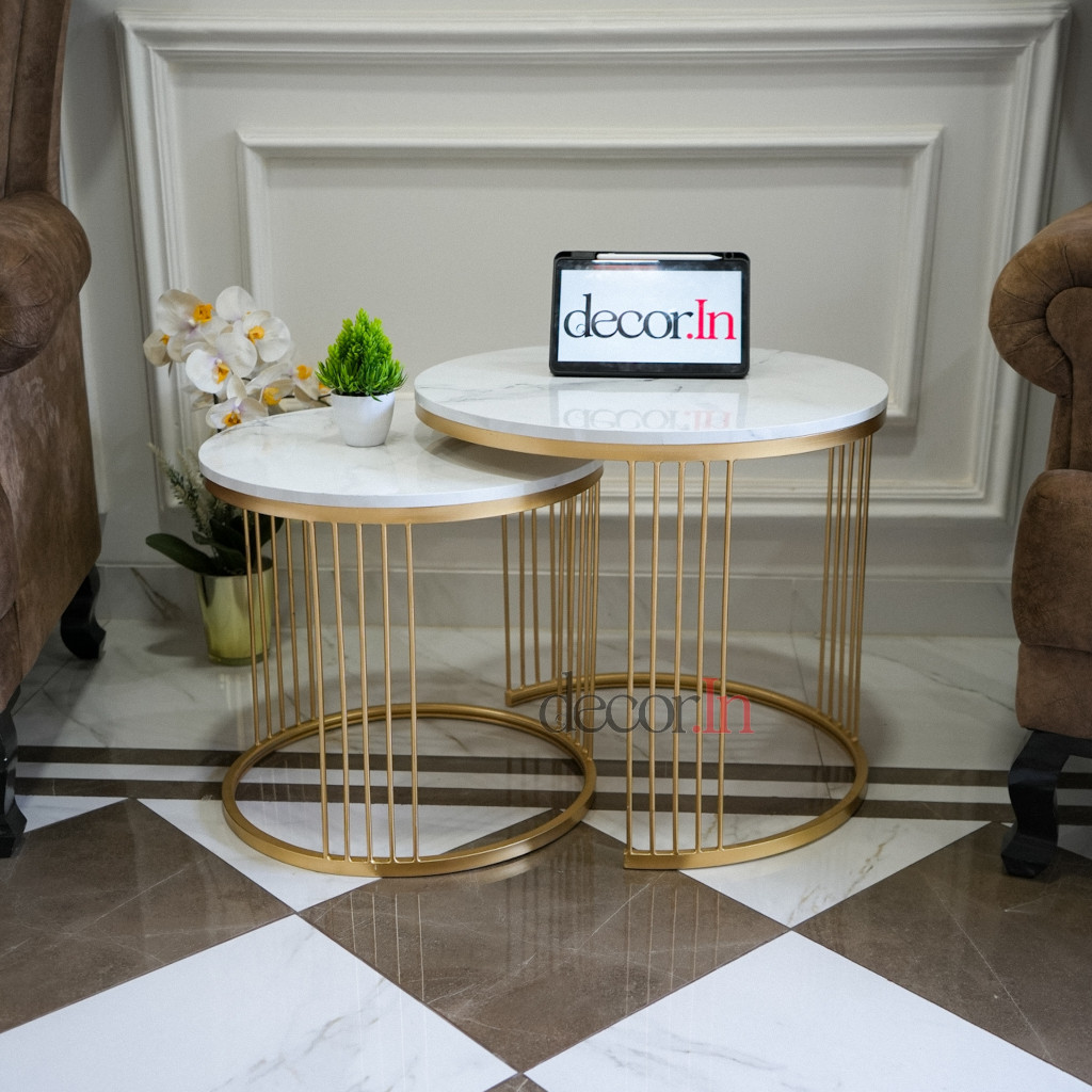Decorinesia Meja Ruang Tamu Minimalis 1Set Industrial Besi HPL Motif Marmer