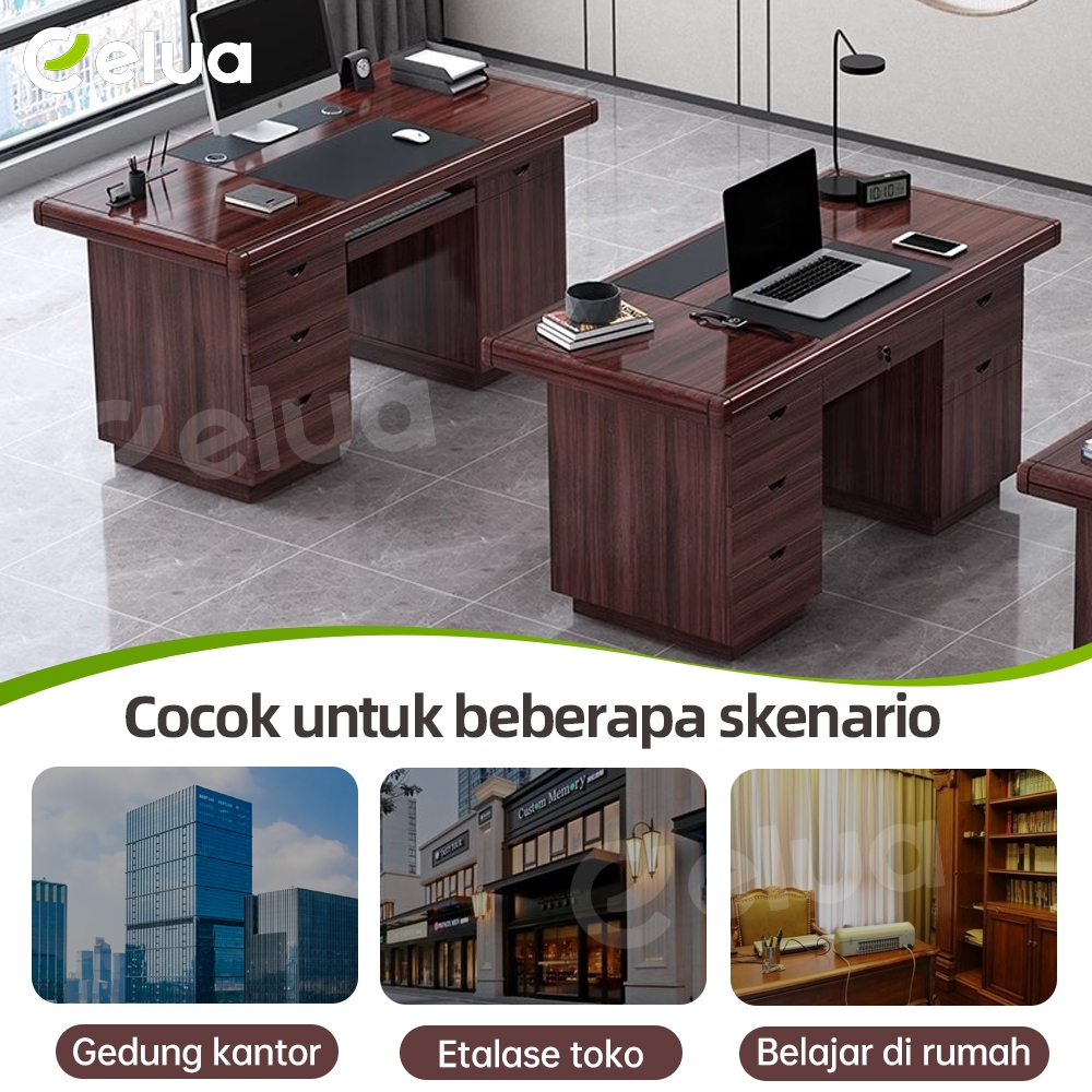 ELUA Meja komputer multifungsi dengan baki keyboard meja komputer desktop dengan l meja bergaya Cina meja tulis meja tul