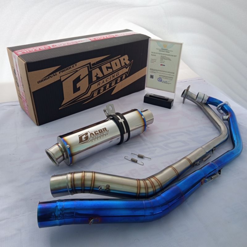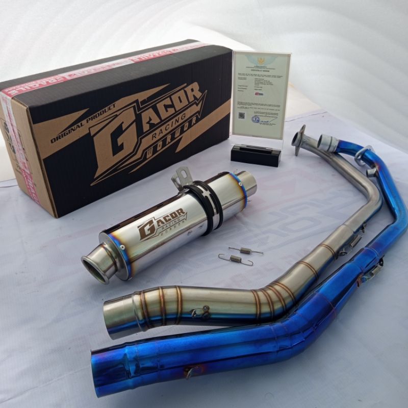 Knalpor racing bulat halfblue bas adem original Gacor pnp motor ,Sonic 150,Supra GTR, cb 150 r old/new/led, cbr 150 facelift/lokal/tailan, vixion old/new/r, R15 v2/v3/v4, Xsr , Xabre,Mx king,