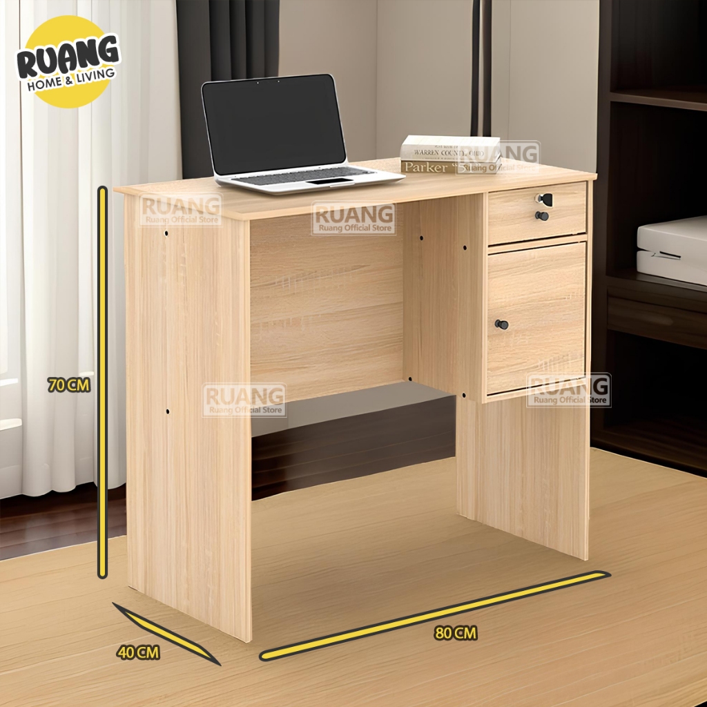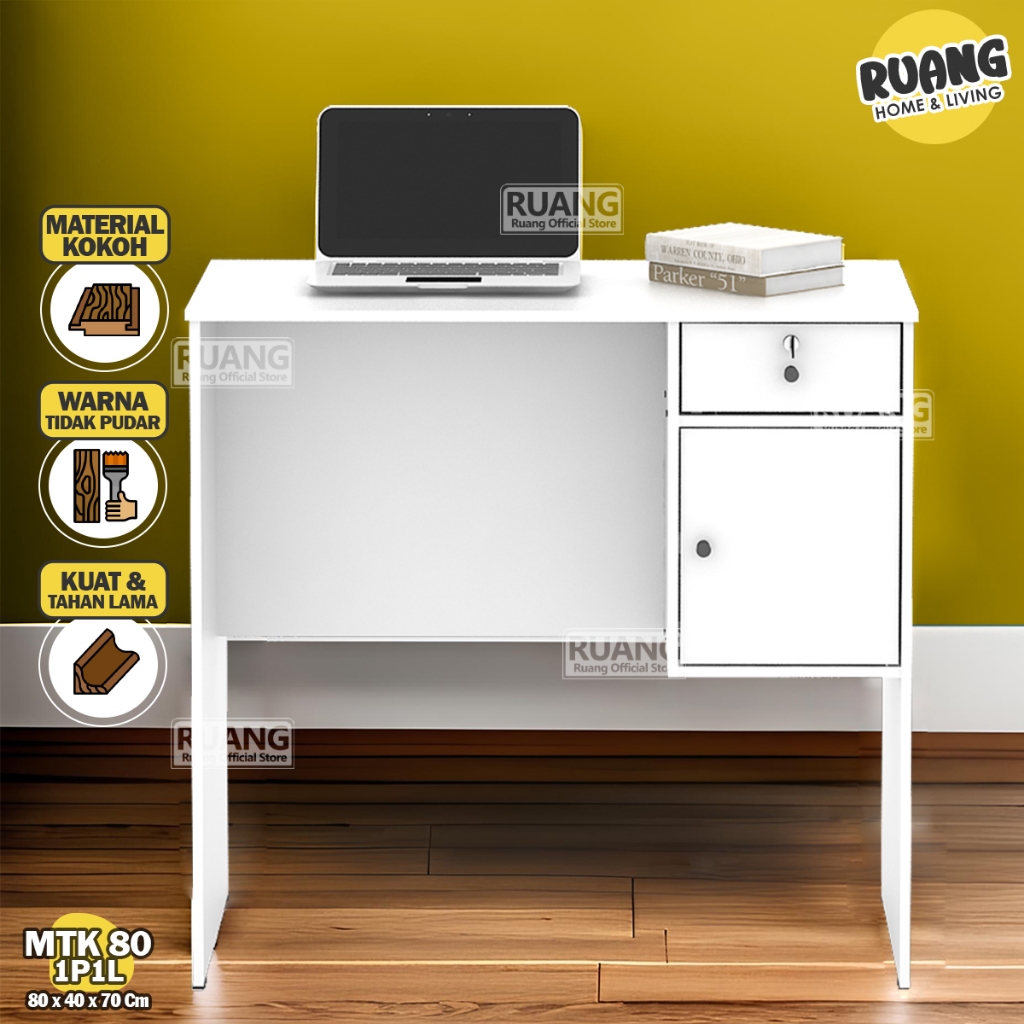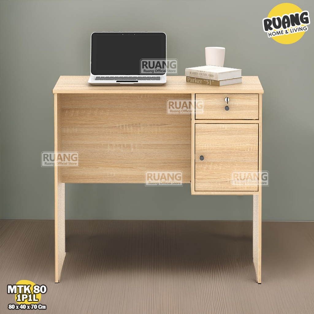 MTK 80 1P1L Meja Kantor Meja Tulis dengan L dan Kunci Meja Kerja Minimalis Meja Belajar Minimalis