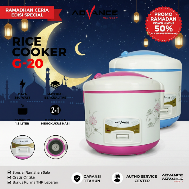 MAGIC COM ADVANCE G20 RICE COOKER 1.8 LITER 3IN1 MULTIFUNGSI ALAT PENANAK NASI SERBAGUNA NASI RICE MINI TERBARU MURAH TE