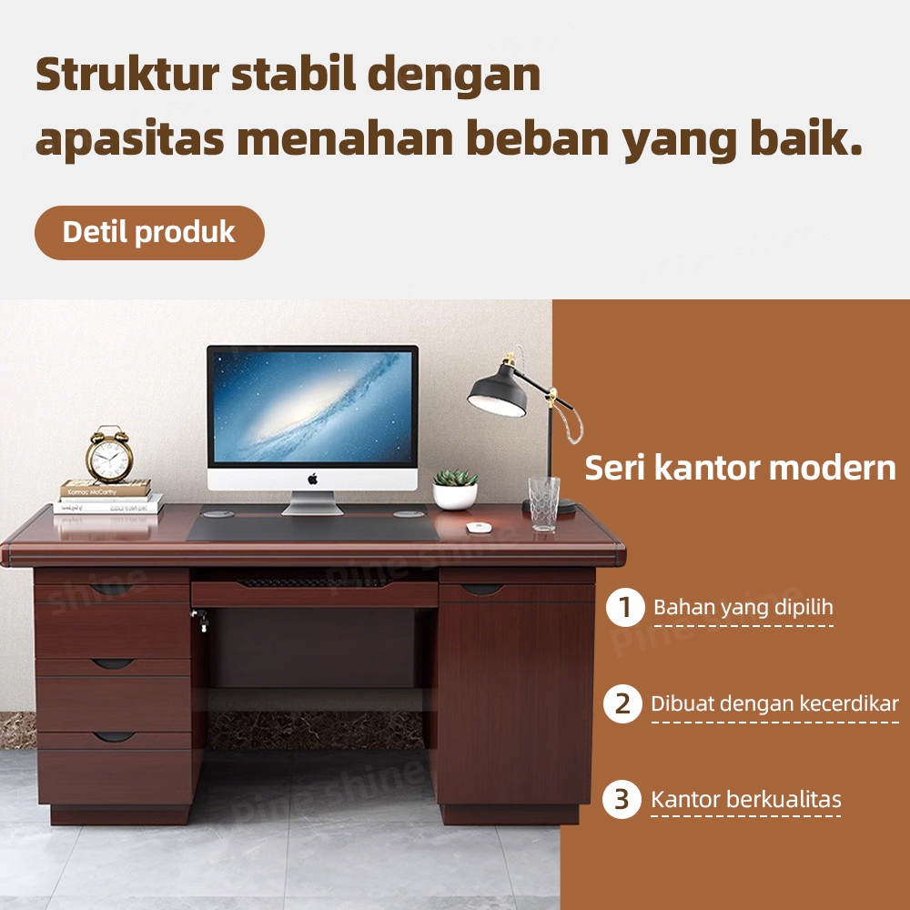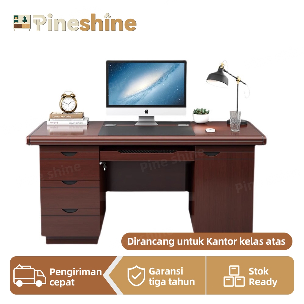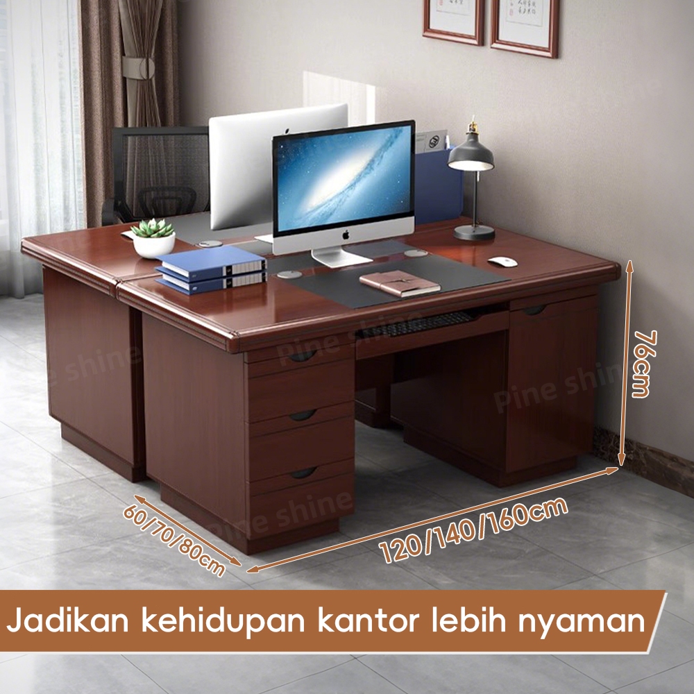 Pineshine Meja Komputer Desktop Tunggal Cina 3 L 1 Istirahat Keyboard 1 Kabinet Utama Dengan Lubang Kawat di deskt